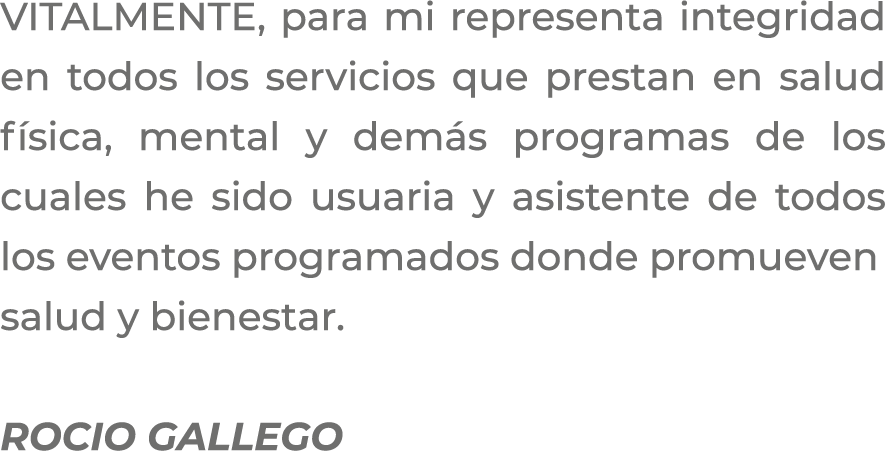 VITALMENTE1, es una entidad que contribuye al progreso continuo y preventivo de un mejor estilo de vida a través del acondicionamiento y la preparación física y mental; además de promover el desarrollo de habilidades culturales y de desarrollo organizacional.